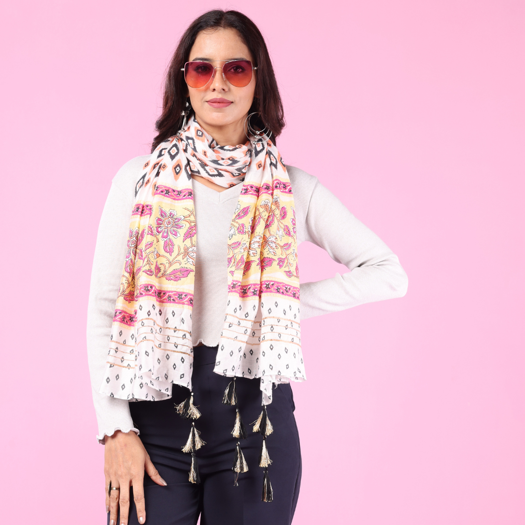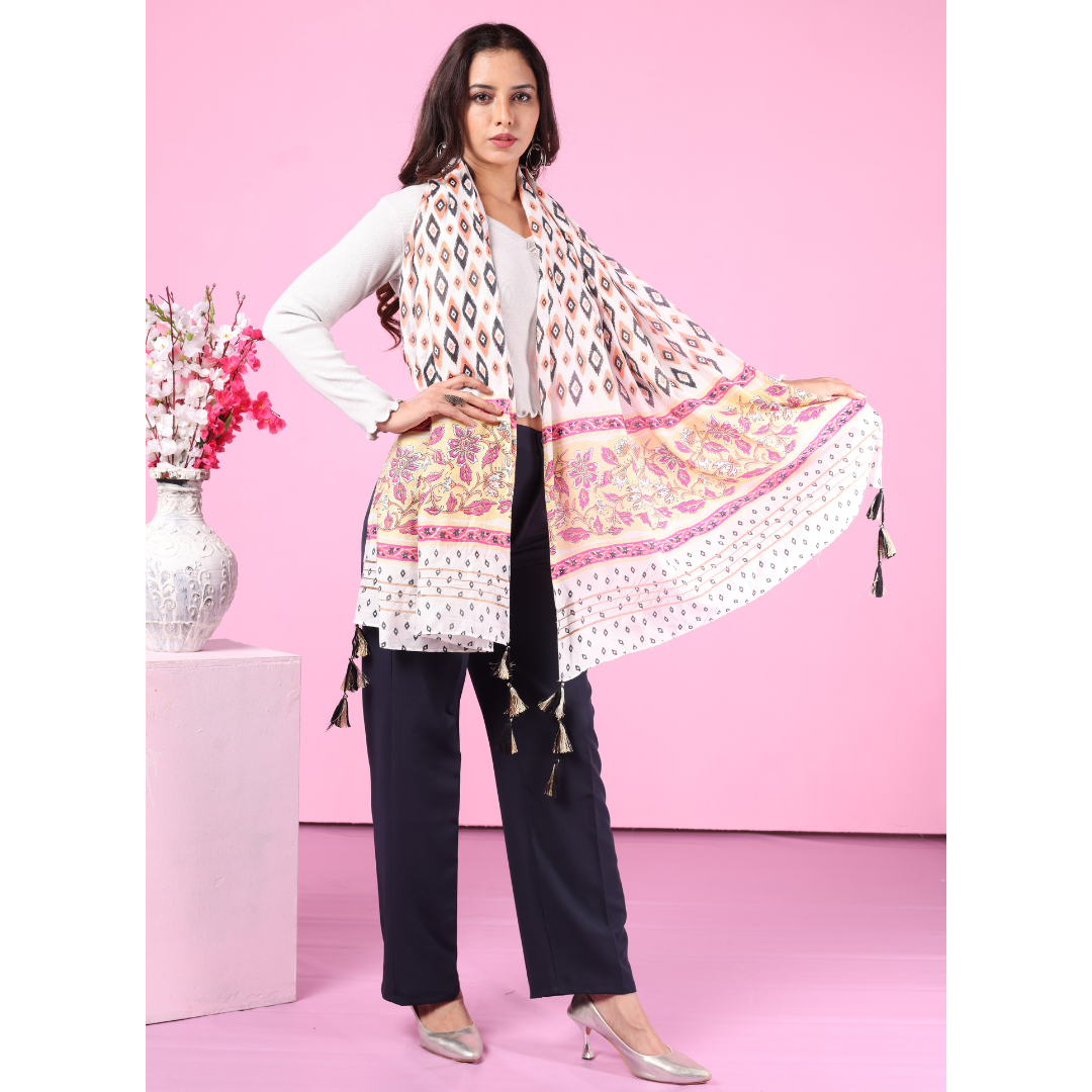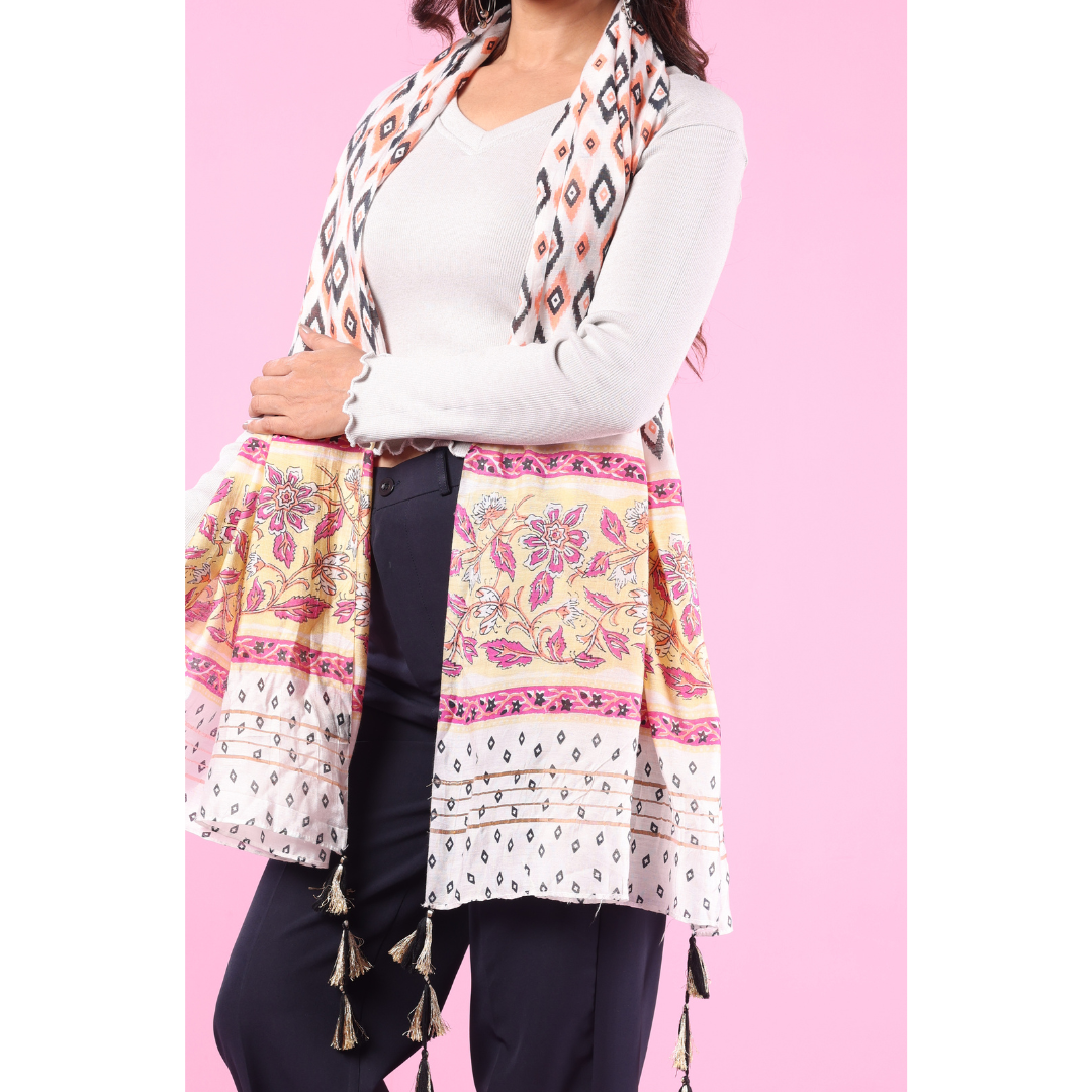 Chanderi Tanjore Silk Block Print Stole